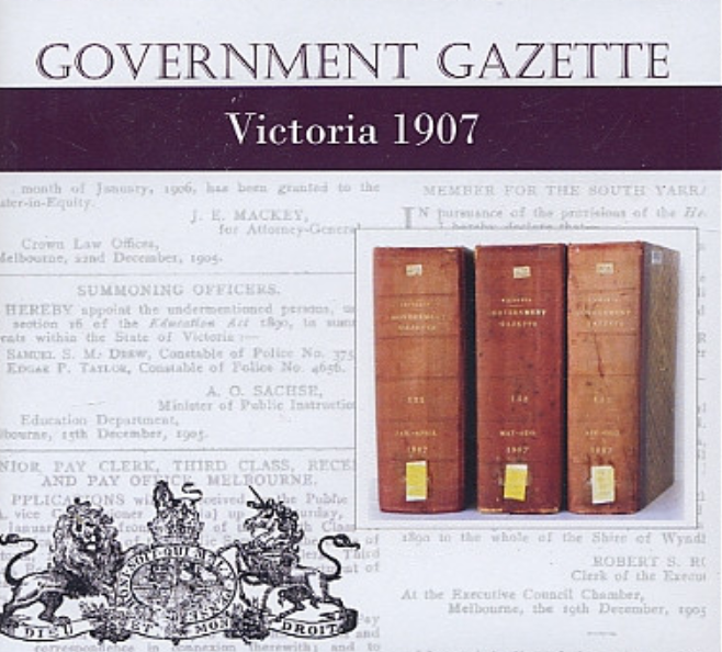 Victorian Government Gazette 1907 - USB